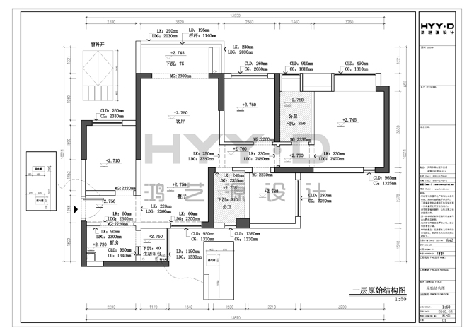 深圳星河傳奇復式室內設計一層原始平面圖